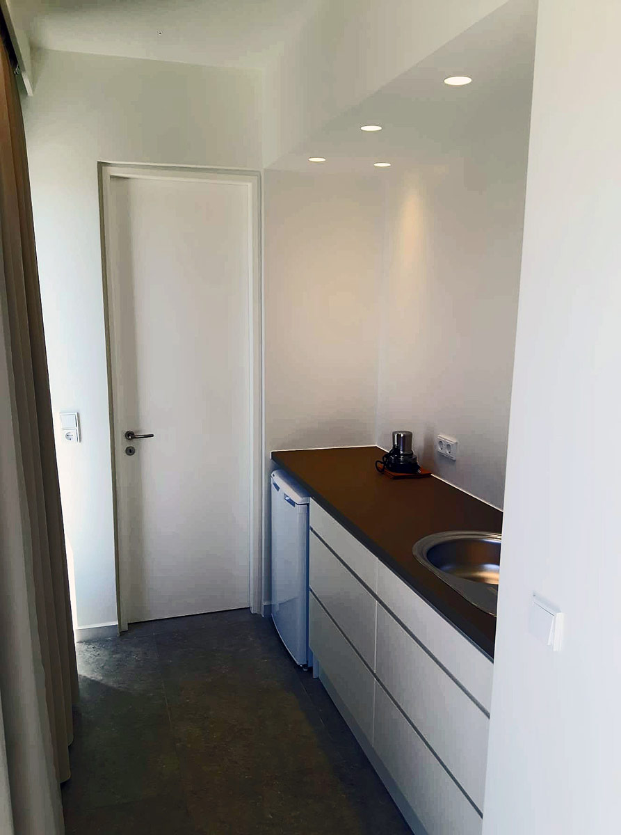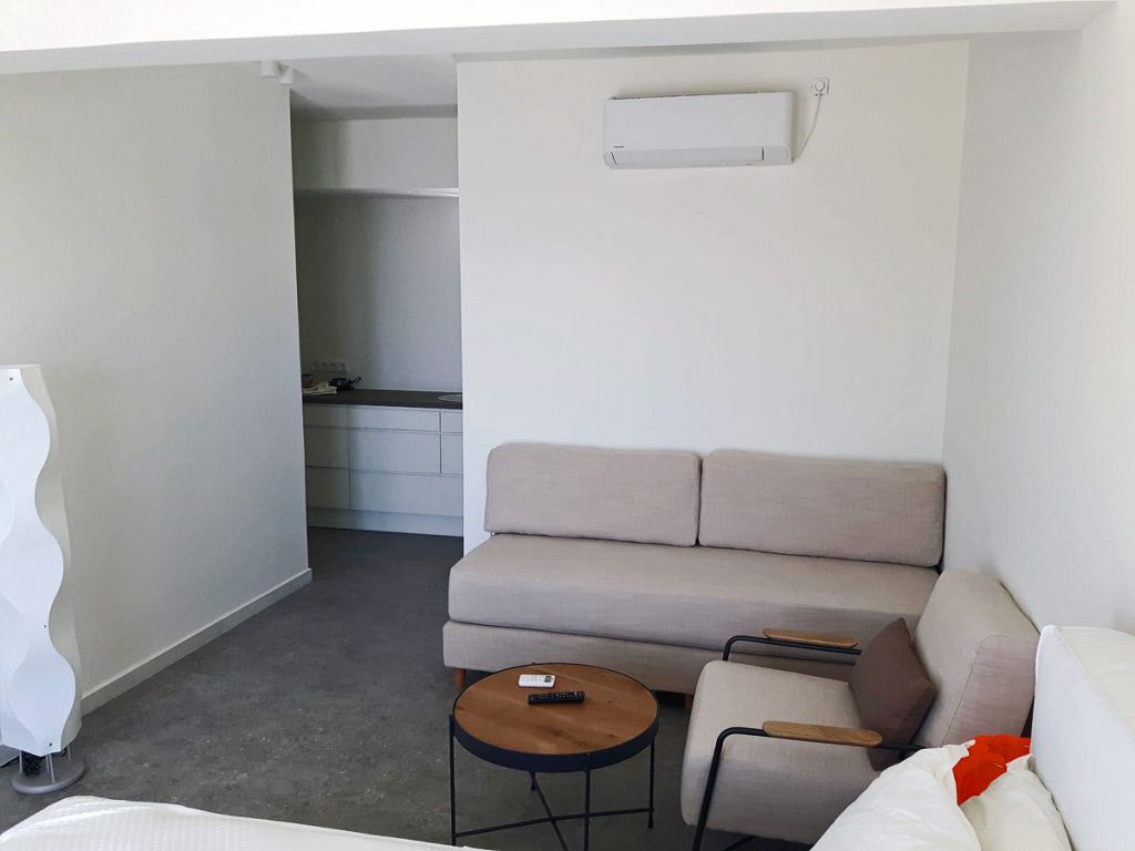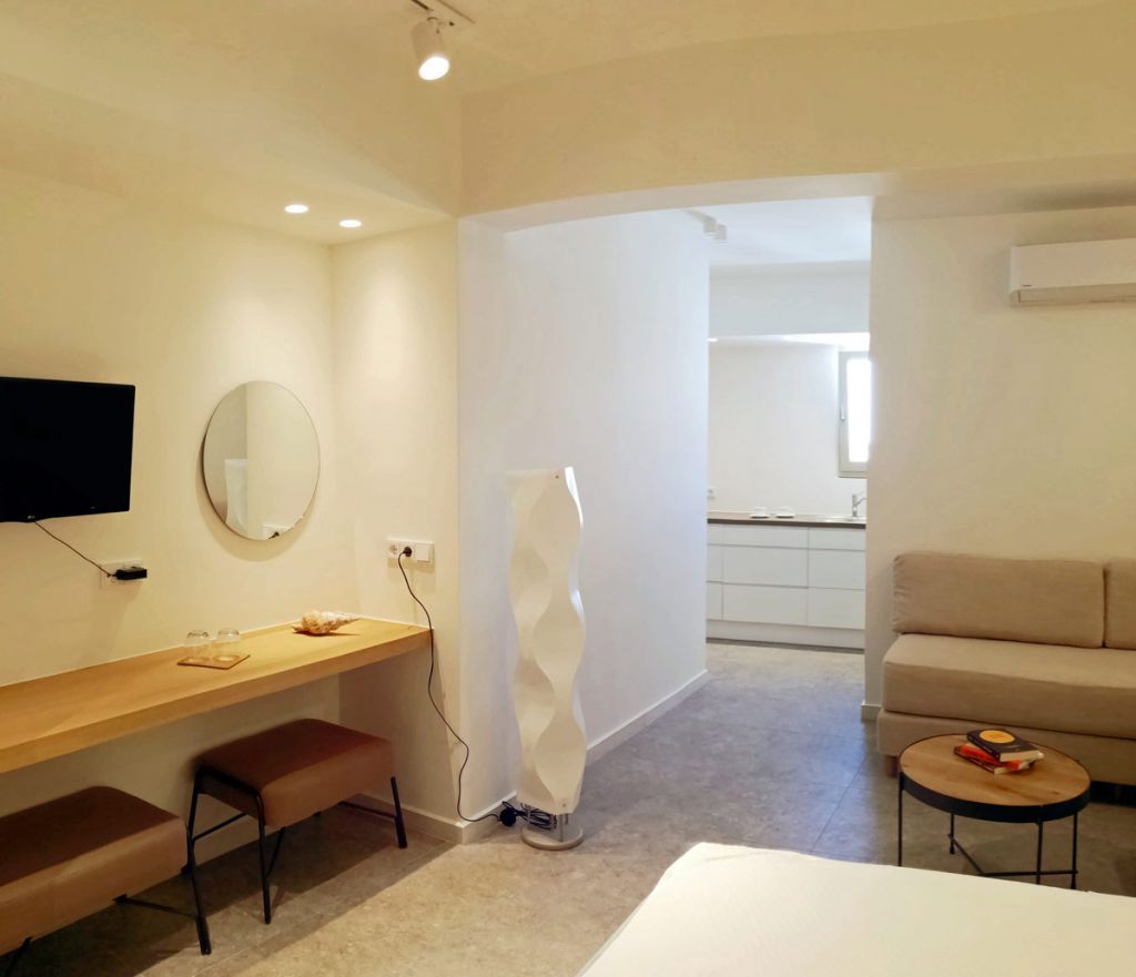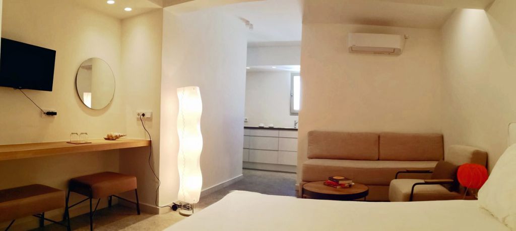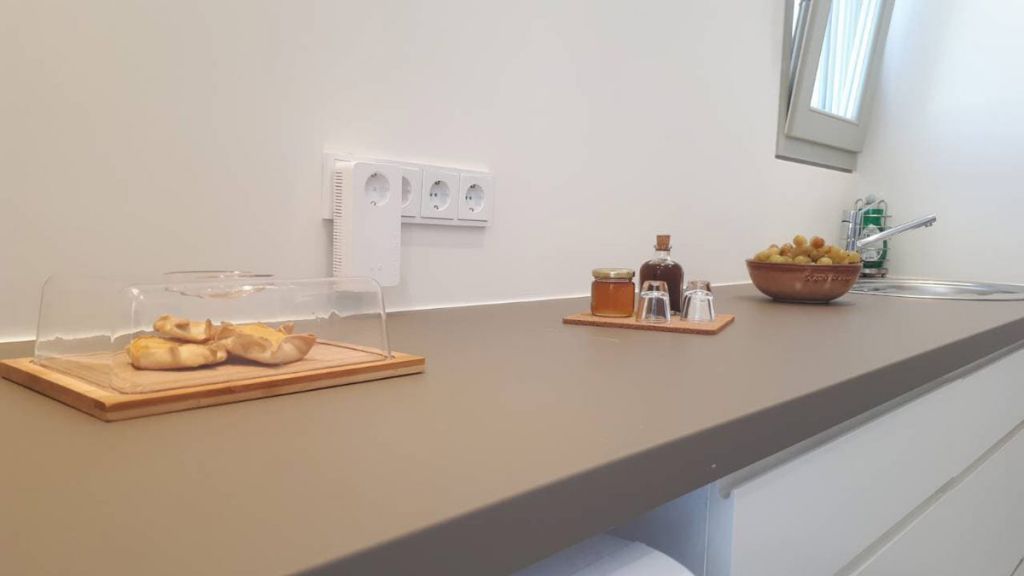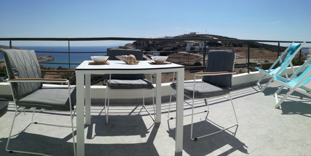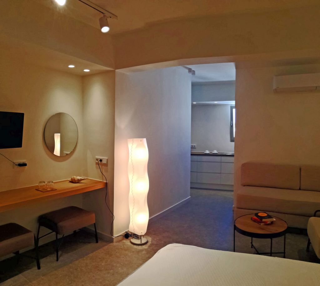 All accommodation are more than spacious and aery, able hosting up to 3 adults. Full fridge with local delicacies for a warm welcome to all our guests, is expecting you anytime of your arrival. King size beds, seating area, with large verandas and spectacular view at the Aegean Sea, forces you to stop the time, stop thinking. The apartment is equipped with a kitchenette with all the “must” for preparing a delicious breakfast or a light meal. Bathrooms with modern amenities and of course bathrobes and slippers, contribute to your home atmosphere.